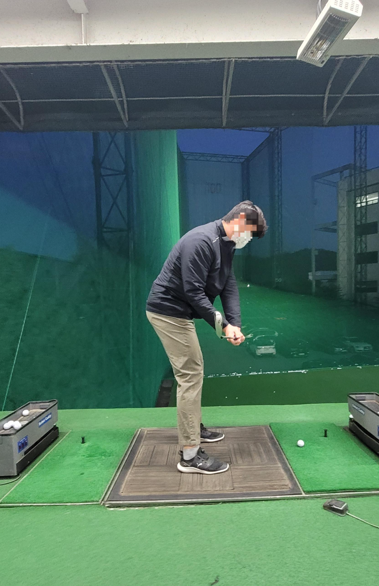 몸 앞쪽에서 대각선으로 카메라 영상 및 사진을 찍는 경우가 있습니다. 아래의 측면 골프 사진은 위 2번(올바른 카메라 각도)과 동일한 동작을 그대로 유지하고 카메라 각도만 다르게 촬영한 사진입니다.