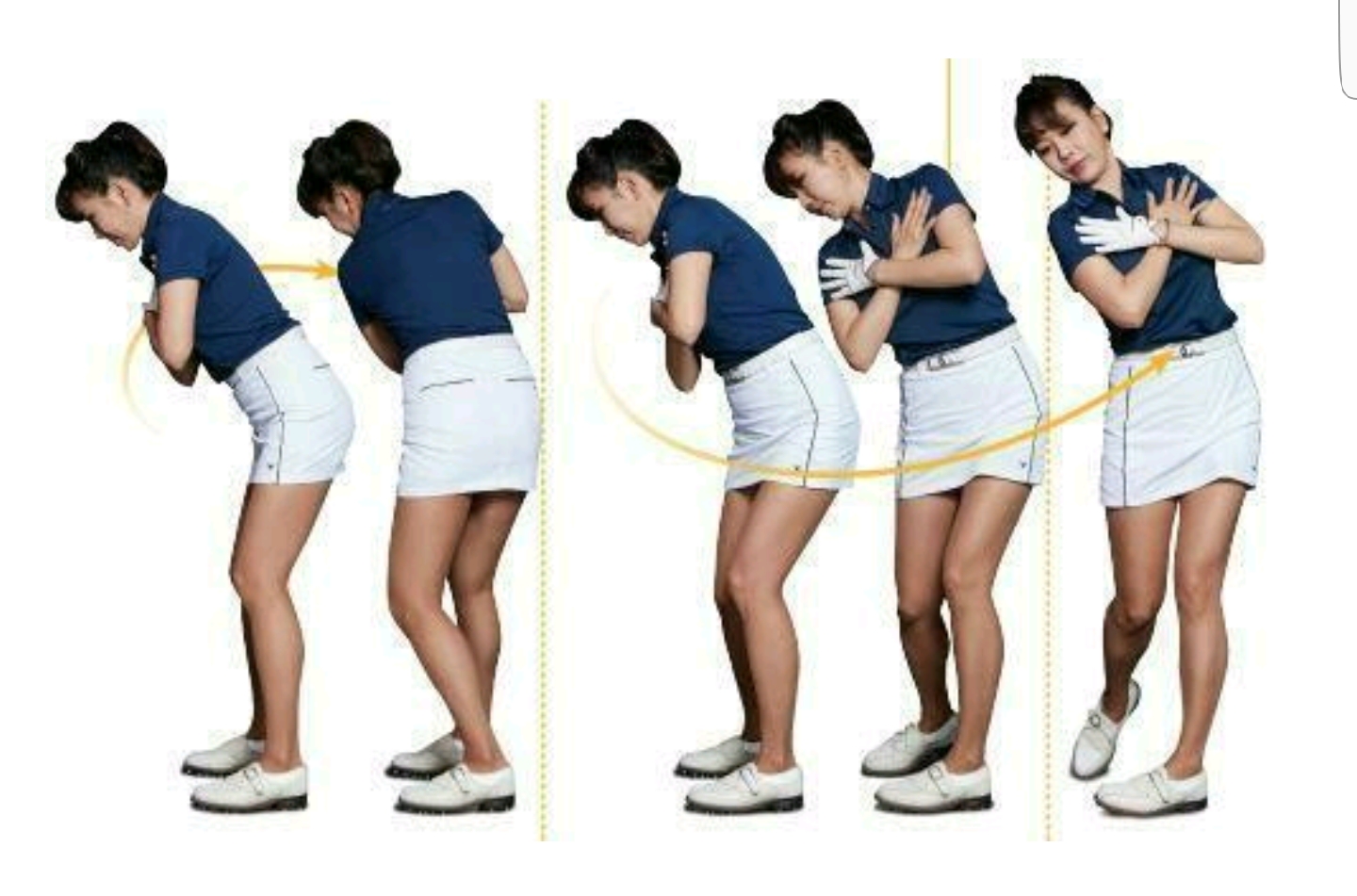 척추각도 유지의 경우도 헤드업과 비슷한 내용입니다. 골프 어드레스 시 척추각도의 경우도 자세를 잡았을 때 형성된 각도를 골프 스윙하는 동안은 계속 똑같은 각도를 유지해야 합니다. 골프 자세는 살짝 앞으로 숙여진 자세입니다. 위 헤드업과 만찬가지로 치자 마자 마무리 자세를 취하지 않고, 본능적으로 세게 치면서 번쩍 일어나는 경우가 있습니다. 또한 유연성이 너무 안 좋은 분들은 마무리 자세에서 허리나 몸이 불편하여 일어나 버리게 되는 경우입니다.